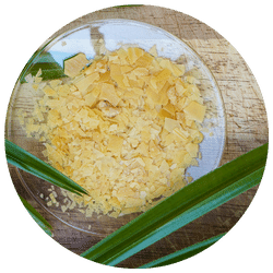 A natural vegetable wax obtained from the leaves of the Brazilian palm tree that grows un-endangered in native forests. Each year leaves are pruned by hand to harvest the leaves without harming the tree. To our